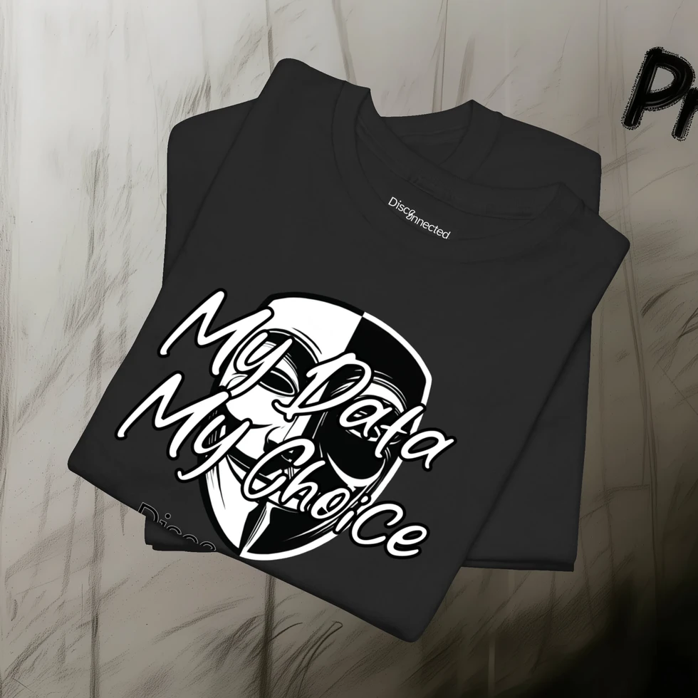 That’s why we created Disc0nnected Anonymous. This collection is about making a stand before it’s too late. Every t-shirt features a character holding out a phone, with the words “My DATA, MY CHOICE” lit up on the screen. The message is clear: the fight for data privacy affects everyone, everywhere.