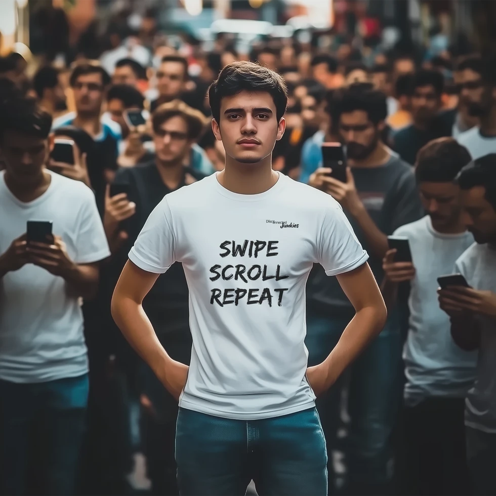 Addicted to the scroll? You’re not alone. The Disc0nnected Junkies collection is a bold wake-up call for anyone caught in the grip of social media and digital addiction. With thought-provoking designs like “Drained by Scrolling” and “How many hours have you lost scrolling today?”, these t-shirts challenge you to confront the habits stealing your time and joy.